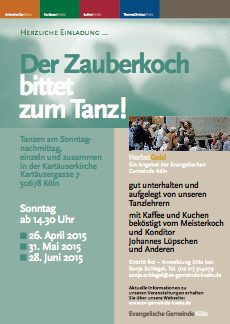 Egal ob Beginner, Fortgeschrittener oder Profi, wir laden alle recht herzlich zu unseren Tanz- und Mottoparties für SENIOREN in der Kartäuser Kirche in (Kartäusergasse 7 50678 Köln) Köln ein.